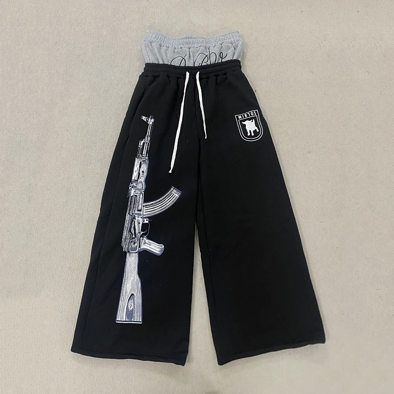 Y2K High-Waisted Printed Embroidered Street Guard Pants Spring Summer Casual Straight Leg Double Waist Design Fashionable
